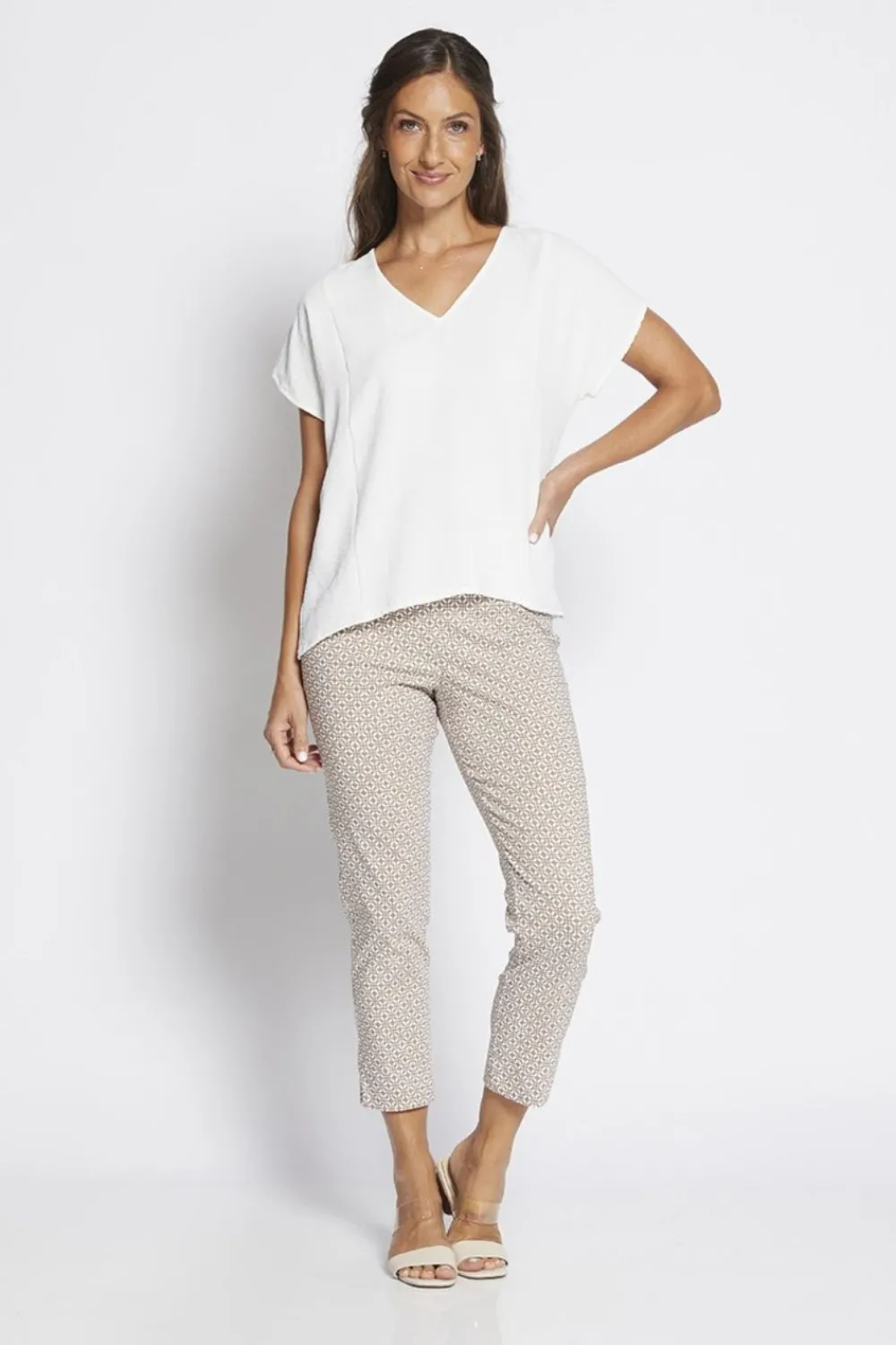 Philosophy PANTS|Easy Tile Print Pant | Beige/White